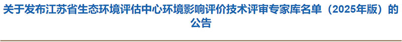 | 正式发布!江苏省生态环境评估中心环境影响评价技术评审专家库名单(2025年版) |